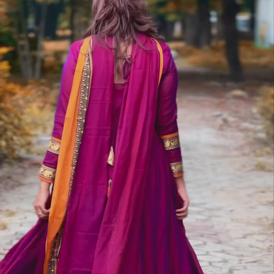 "Introducing our custom-made women's long dress, the Label Kamra Pure Narayanpet Cotton Dress in Aliya Cut pattern. This elegant dress is made to your specific measurements, ensuring the perfect fit for every body type. The Aliya cut pattern brings a modern twist to the timeless Anarkali silhouette, resulting in a sophisticated and graceful appearance.