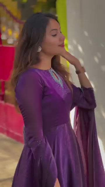 "Indulge in the luxurious comfort and ethereal beauty of the Ayyesha – a rich hand-embroidered space silk gown. This isn't just a garment; it's an experience. Imagine gliding through your day, enveloped in the soft caress of space silk, a fabric that feels like velvet yet flows like a dream. The Ayyesha is designed for the modern woman who appreciates both timeless elegance and effortless style.