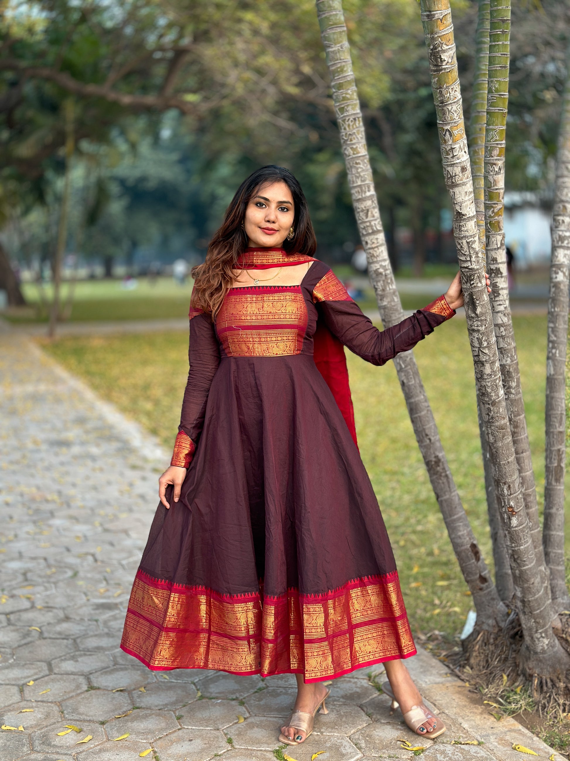 "Experience the timeless elegance of a traditional Chettinad cotton Chinmayi. This exquisite piece of handcrafted artistry isn't just fabric; it's a legacy woven into every thread. Imagine draping yourself in the rich history and cultural heritage of Chettinad, feeling the soft, breathable cotton against your skin – a true testament to skilled craftsmanship and enduring style.