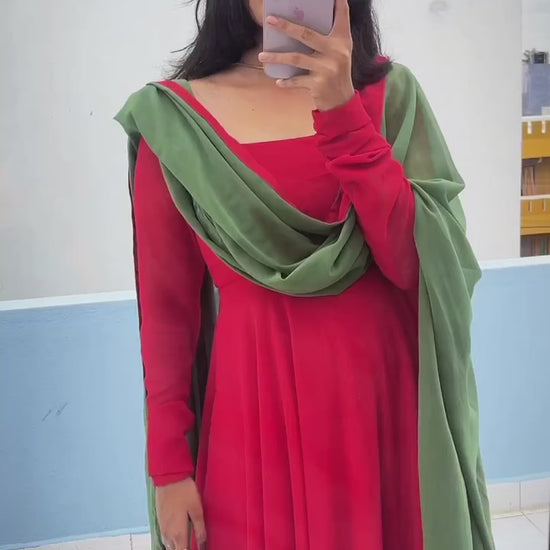 This breathtaking Anarkali is designed for the modern woman who appreciates timeless elegance and comfortable sophistication. It's the perfect choice for any occasion, from a wedding celebration to a casual brunch with friends. The Kanmani Red effortlessly combines traditional craftsmanship with a contemporary silhouette, allowing you to express your unique personality with confidence and charm.