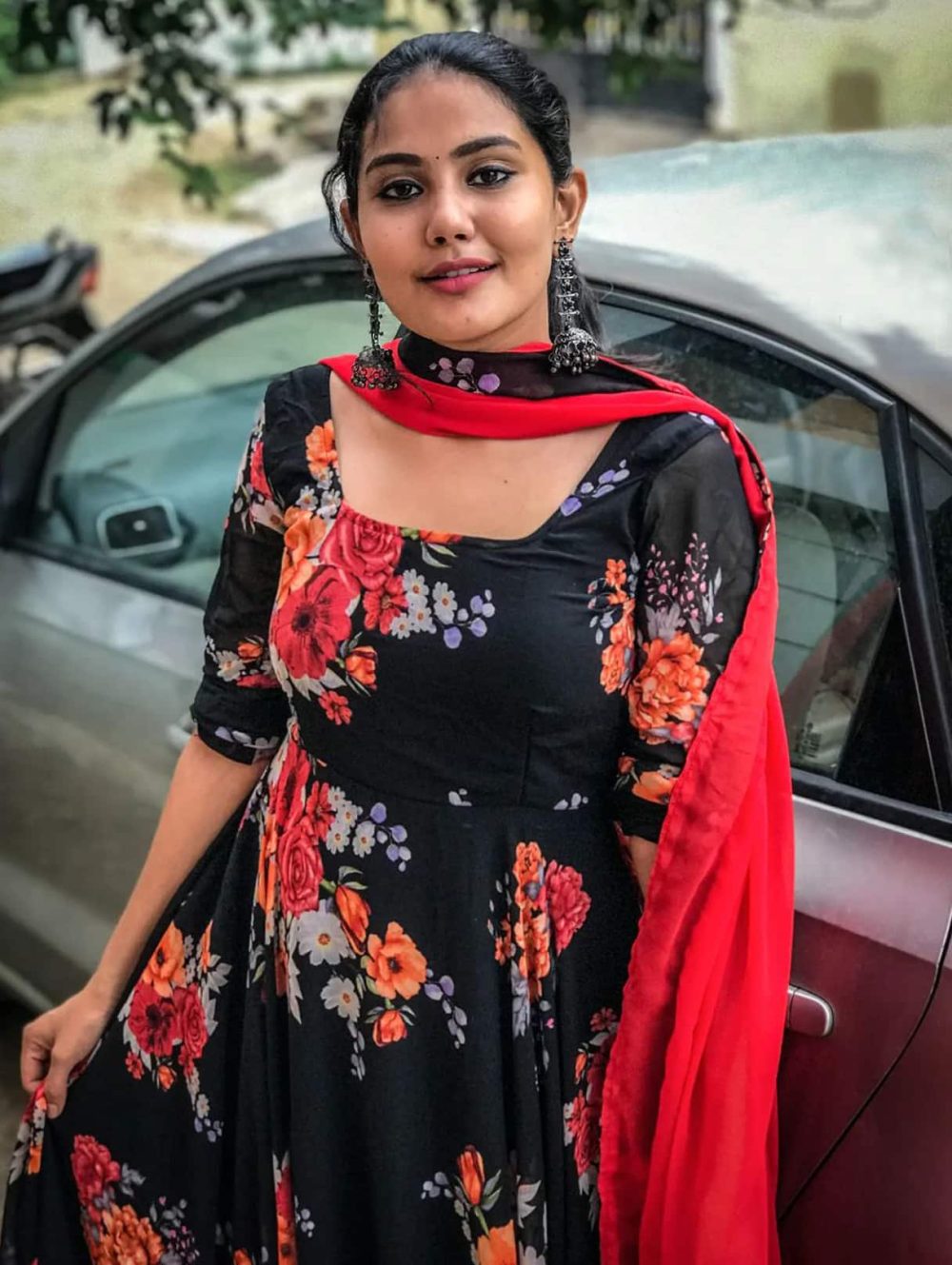 Ready to experience the difference a custom-made dress can make? Order your Kamra floral printed black Georgette long dress today and indulge in the ultimate blend of style, comfort, and personalized elegance. Don't miss out on this opportunity to own a truly special piece!".
