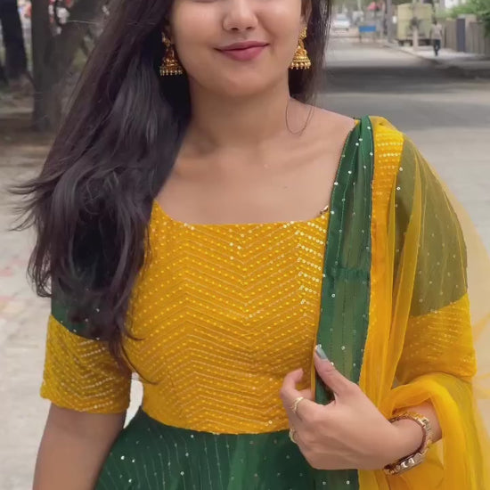 Step into the spotlight in the Kamra A mustard sequinned Georgette silk dress – a custom-made masterpiece designed to flatter your unique figure and make you feel utterly radiant. This isn't just a dress; it's an experience, a celebration of your individuality, crafted for those special moments that deserve a truly unforgettable look.