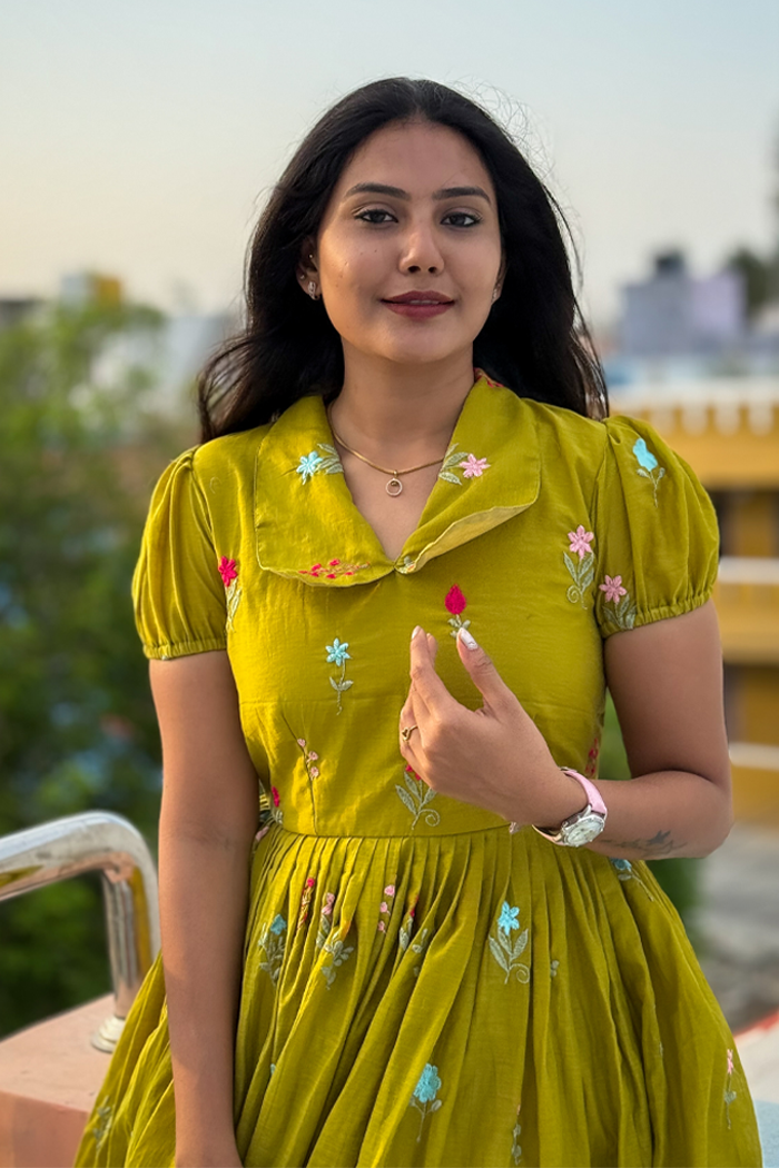 Upgrade your wardrobe with our Flower Embroidery Casual Mul Chanderi Frock, crafted from premium mul cotton blended with luxurious Chanderi fabric. Designed for comfort and elegance, this breathable and lightweight frock is perfect for daily wear, summer outings, festive brunches, and casual gatherings.