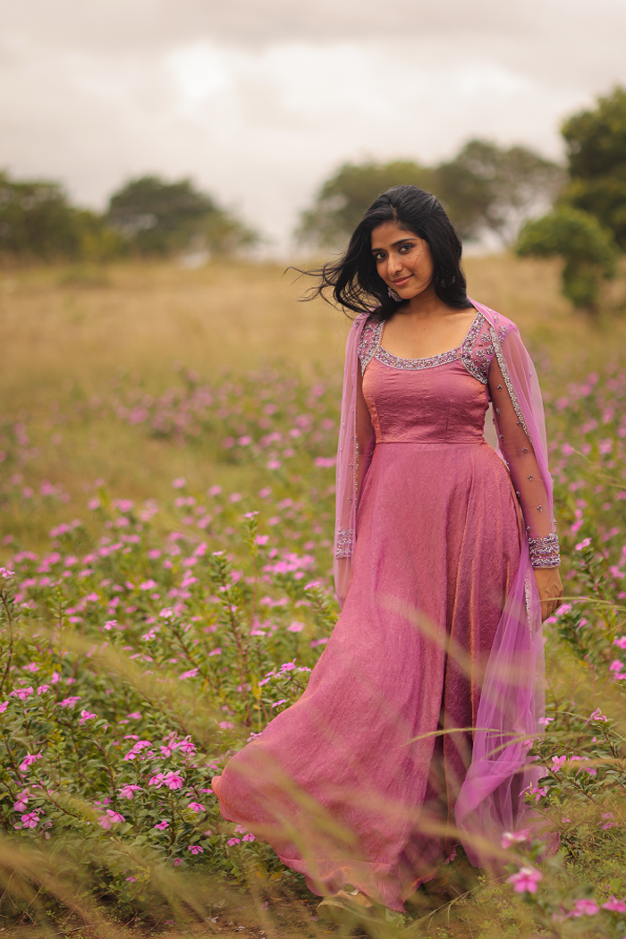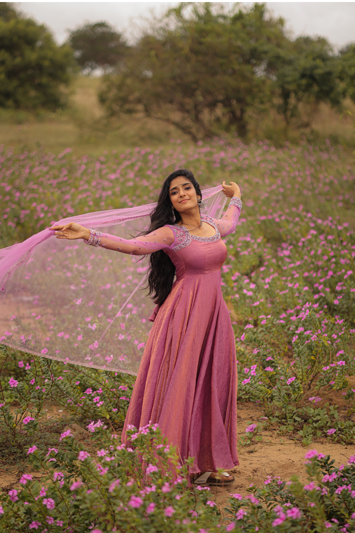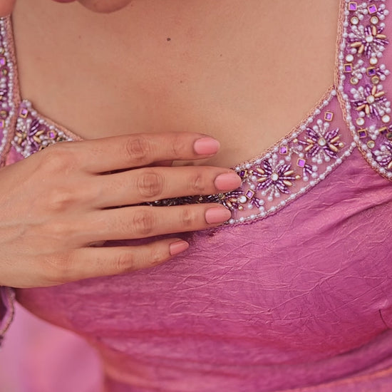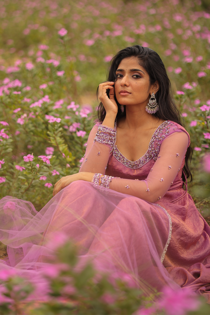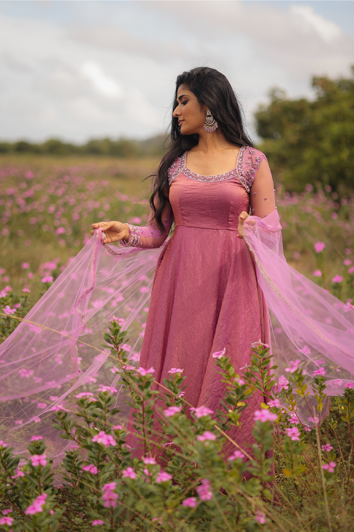 A luxurious crush space silk dress crafted to perfection, featuring rich handwork embroidery that adds timeless elegance.