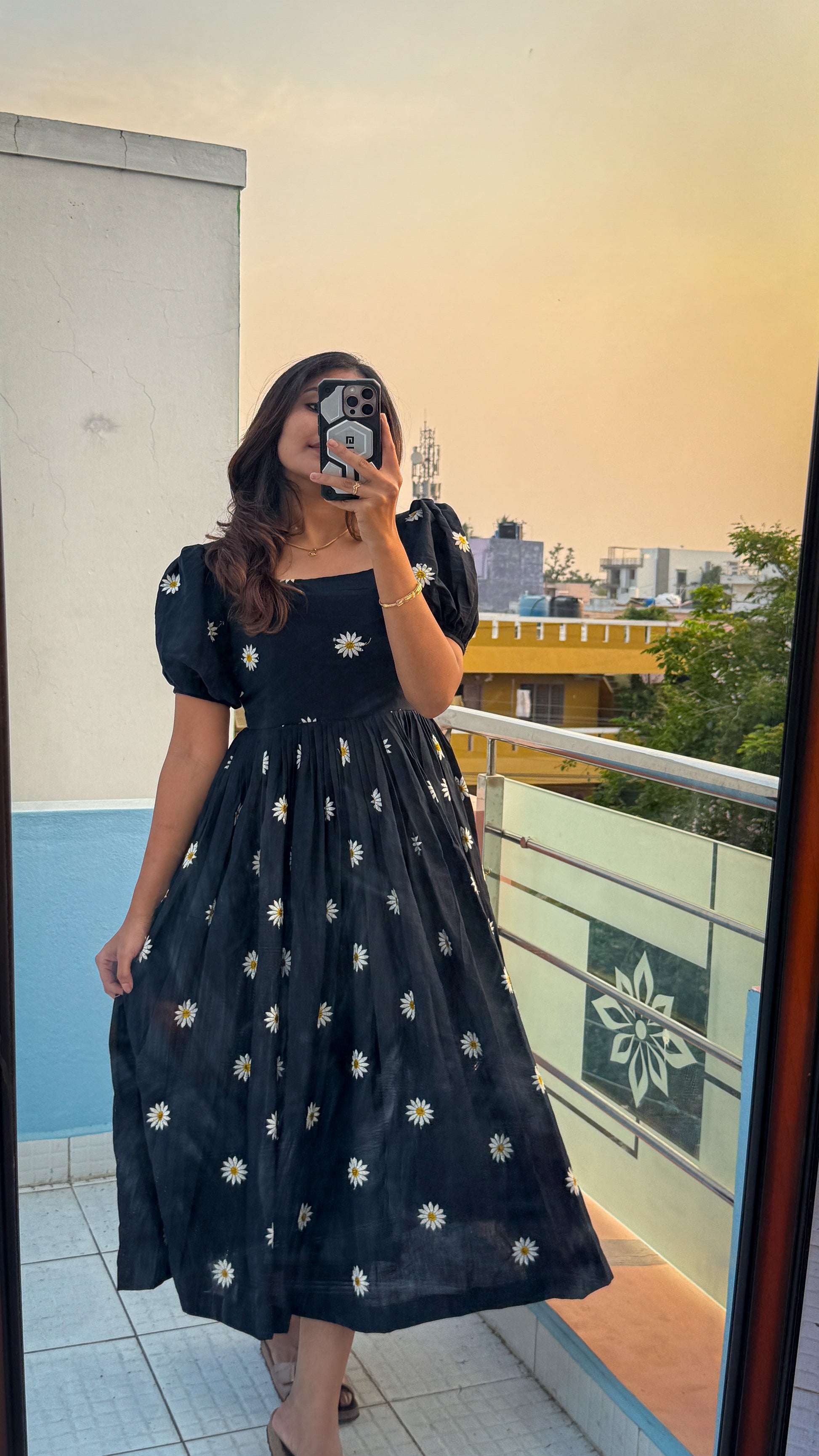 Imagine yourself strolling through a sun-drenched meadow, the soft cotton caressing your skin. That's the magic of the Sana Black dress. Its intricate daisy embroidery adds a touch of whimsical charm, transforming a simple summer dress into a truly unforgettable piece. This lightweight and breathable fabric keeps you cool and comfortable all day long, whether you're picnicking in the park or enjoying a sunset cocktail. This is the perfect dress for those hot summer days when you want to feel both beautiful and relaxed.