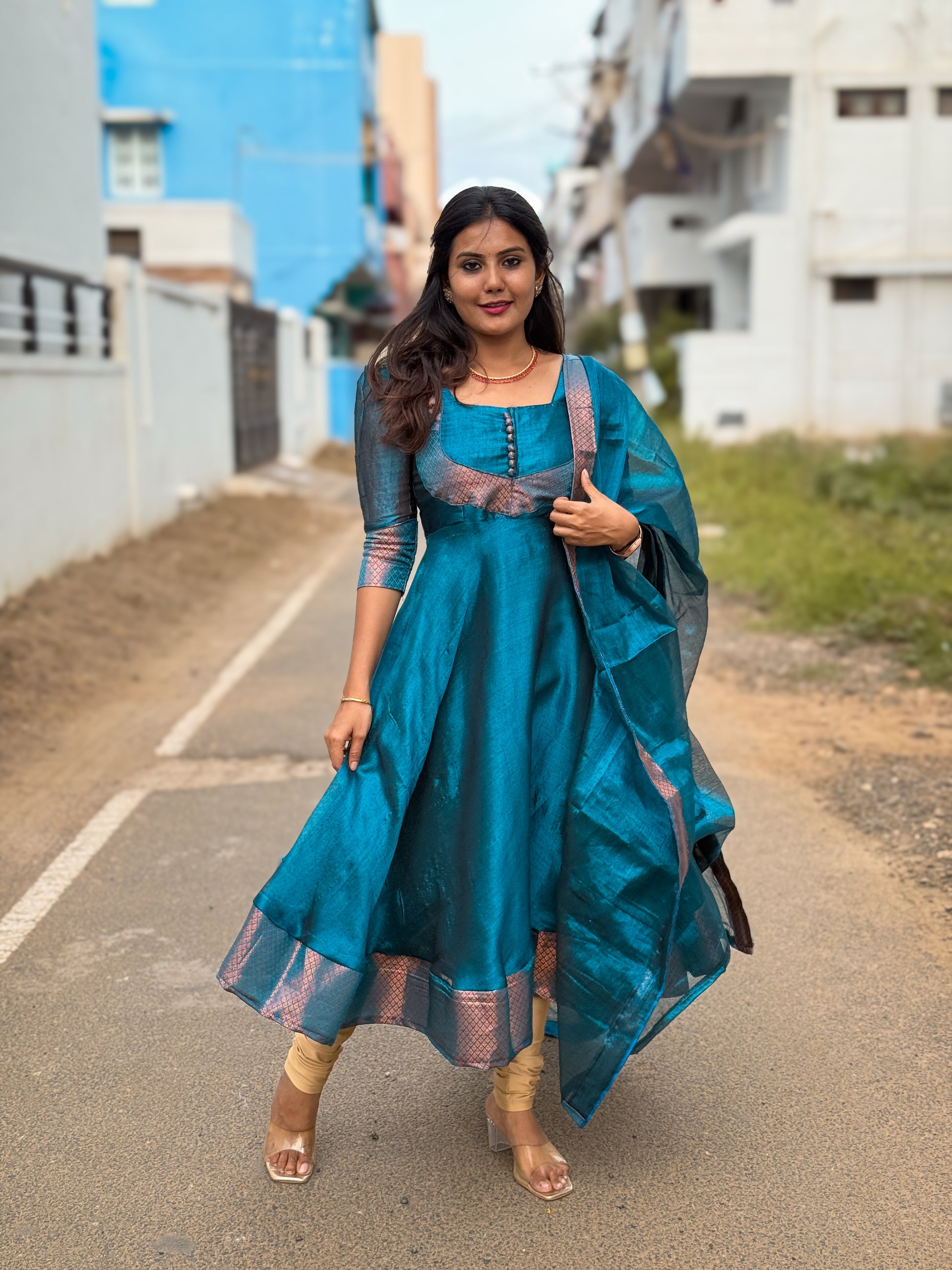 Inspired by the warmth and joy of the festival of lights, the SAVITHA🌸 Anarkali offers a fresh take on traditional Indian attire. Imagine yourself gracefully navigating Diwali celebrations, feeling comfortable and confident in a lightweight, yet beautifully crafted garment. This collection is all about understated luxury, allowing your inner radiance to shine through.