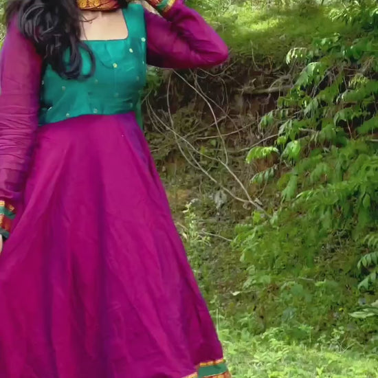 Introducing our custom-made women's long dress, designed for your exact measurements and made with the finest materials. The label Kamra brings you a sensational Dupion silk and Narayanpet mix-match dress, featuring a stunning peacock Zari border detailing and paired with a Narayanpet cotton dupatta. This exquisite Anarkali dress is a true embodiment of luxury and tradition, combining the opulent texture of Dupion silk with the timeless artistry of Narayanpet weaving. The result is a truly unique ensemble that is guaranteed to captivate attention wherever you go. With its intricate details and impeccable craftsmanship, this dress is the perfect choice for any special occasion or event. Step into the spotlight with confidence and grace in this show-stopping outfit. Make a statement and stand out from the crowd with this Kamra creation that exudes elegance and sophistication. Elevate your wardrobe with this impeccable piece that seamlessly blends modern style with traditional charm. Prepare to dazzle and enchant in this extraordinary dress that is as individual as you are. With its outstanding quality and unparalleled beauty, this dress is a must-have for any woman who desires to make a memorable impression. Enhance your personal style with this stunning Kamra dress and experience the allure of handcrafted perfection.