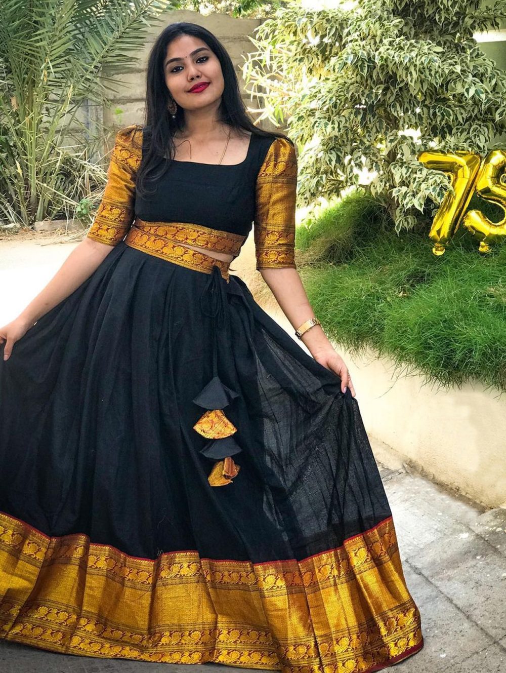 Introducing our custom-made women's long dress by Label Kamra, crafted to perfectly fit your measurements. This stunning black Narayanpet lehenga features a rich, long zarigai border, adding opulence to the garment. Made from high-quality Narayanpet cotton fabric in a vibrant green color, known for its durability and comfort, this dress is a luxurious addition to any wardrobe. The intricate zarigai border is woven or embroidered with metallic threads, adding a touch of luxury and elegance to the gown. The georgette dupatta enhances the grandeur of the dress, making it perfect for special occasions or cultural events where you want to make a statement. This gown exudes sophistication and traditional charm, making it a standout choice for any festive gathering. Elevate your style with this custom-made women's long dress by Label Kamra, and make a lasting impression at any event.